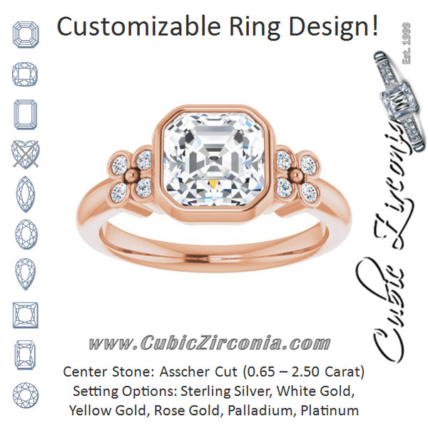 Cubic Zirconia Engagement Ring- The Kjerstin Rose (Customizable 9-stone Bezel-set Asscher Cut Design with Quad Round Bezel Side Stones Each Side)