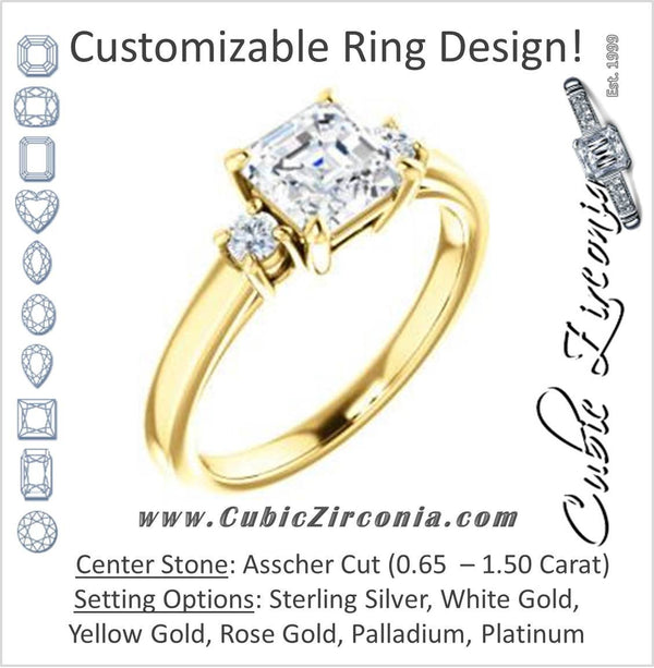 Cubic Zirconia Engagement Ring- The Jacqueline (Customizable Asscher Cut 3-stone with Thin Band and Dual Round Prong Accents)