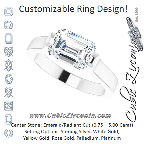 Cubic Zirconia Engagement Ring- The Jiàn (Customizable Bar-set Emerald Cut Solitaire)