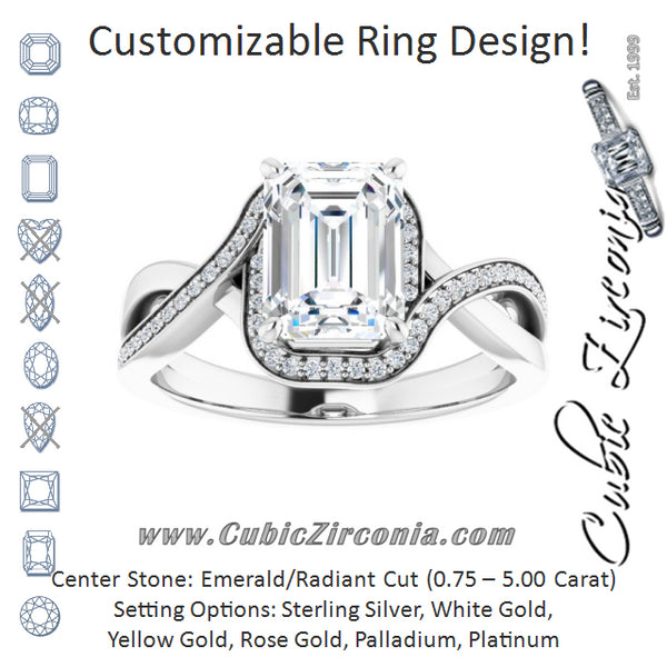 Cubic Zirconia Engagement Ring- The Ananya (Customizable Bypass-Halo-Accented Emerald Cut Center with Twisting Split Shared Prong Band)