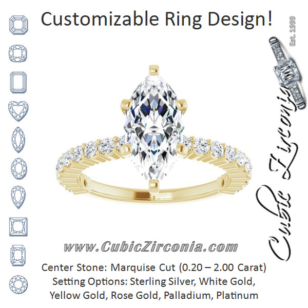 Cubic Zirconia Engagement Ring- The Thea (Customizable 6-prong Marquise Cut Design with Thin, Stackable Pavé Band)