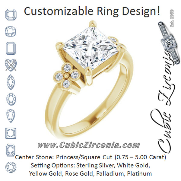 Cubic Zirconia Engagement Ring- The Heidi Grethe (Customizable 9-stone Design with Princess/Square Cut Center and Complementary Quad Bezel-Accent Sets)