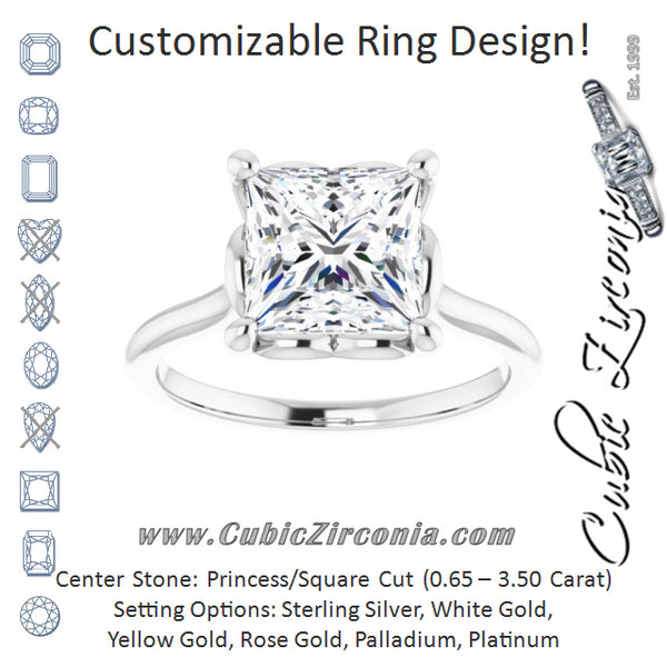 Cubic Zirconia Engagement Ring- The India (Customizable Cathedral-Prong Princess/Square Cut Solitaire)