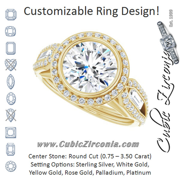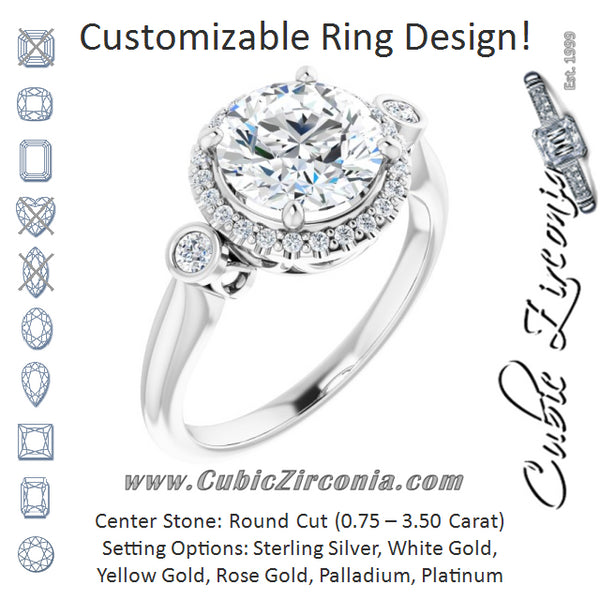 Cubic Zirconia Engagement Ring- The Adoración (Customizable Round Cut Style with Halo and Twin Round Bezel Accents)