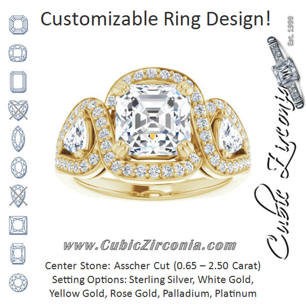 Cubic Zirconia Engagement Ring- The Ana Miranda (Customizable Asscher Cut Center with Twin Trillion Accents, Twisting Shared Prong Split Band, and Halo)