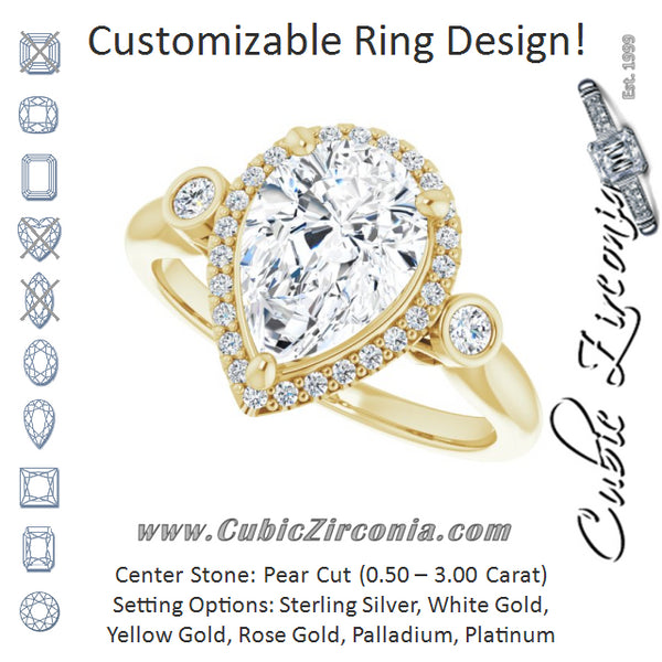 Cubic Zirconia Engagement Ring- The Adoración (Customizable Pear Cut Style with Halo and Twin Round Bezel Accents)