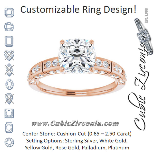 Cubic Zirconia Engagement Ring- The Anna (Customizable Cushion Cut Style with Three-sided, Segmented Shared Prong Band)