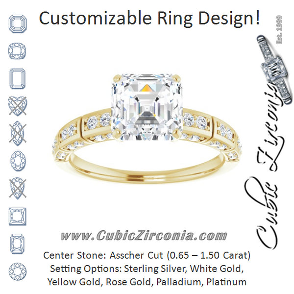 Cubic Zirconia Engagement Ring- The Anna (Customizable Asscher Cut Style with Three-sided, Segmented Shared Prong Band)