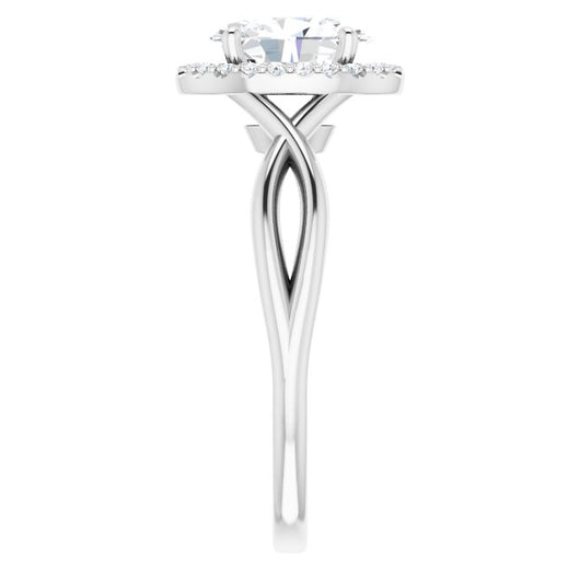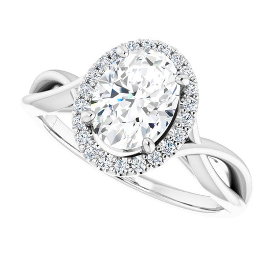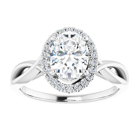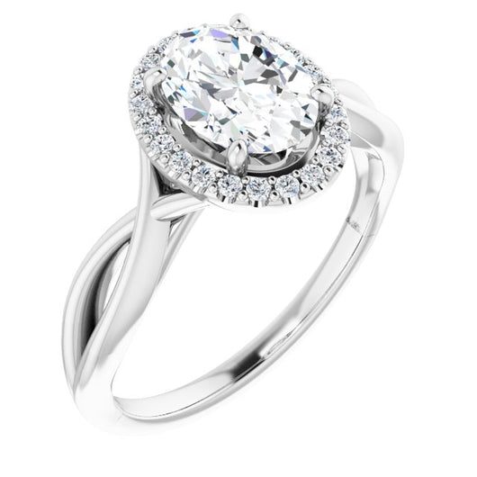 10K White Gold Customizable Cathedral-Halo Oval Cut Design with Twisting Split Band