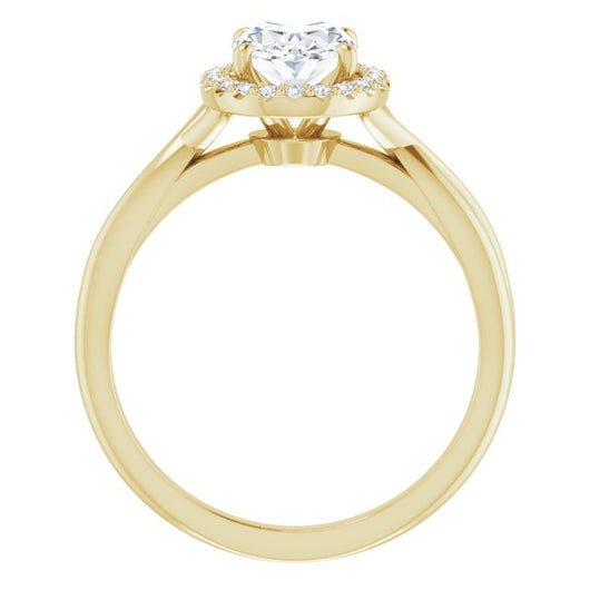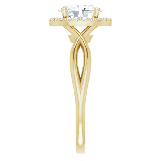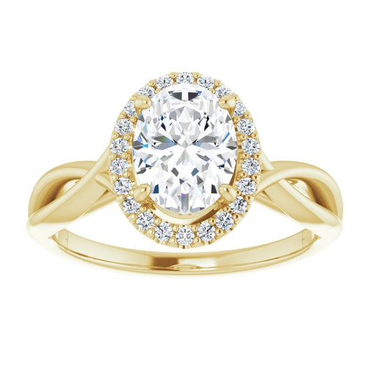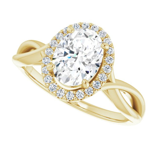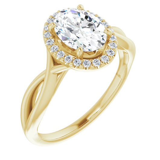 10K Yellow Gold Customizable Cathedral-Halo Oval Cut Design with Twisting Split Band