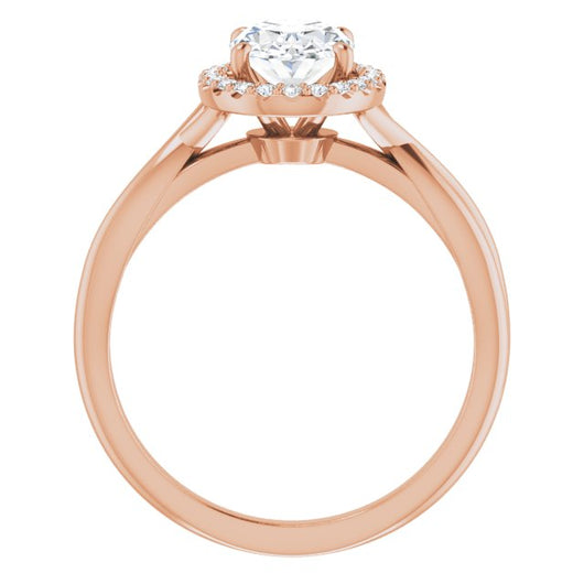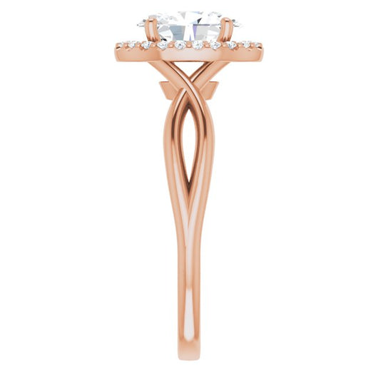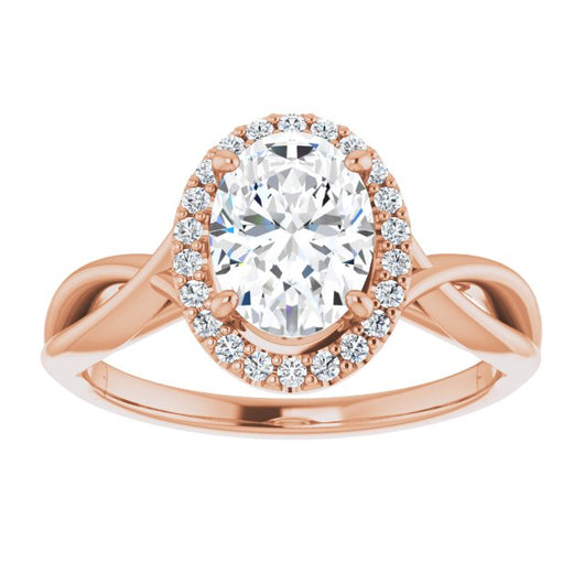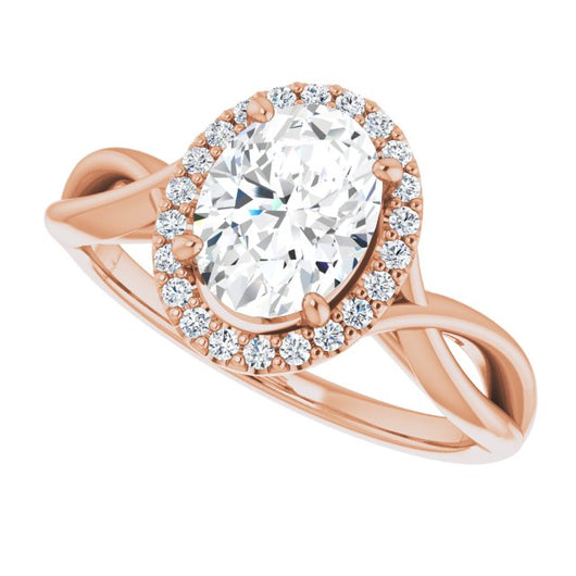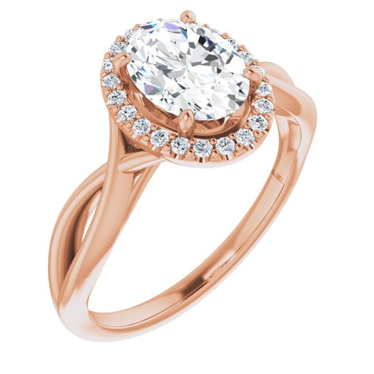 10K Rose Gold Customizable Cathedral-Halo Oval Cut Design with Twisting Split Band