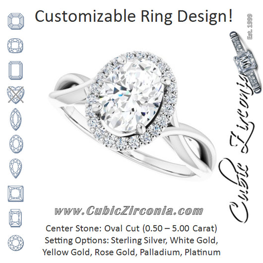 Cubic Zirconia Engagement Ring- The Yawén (Customizable Cathedral-Halo Oval Cut Design with Twisting Split Band)