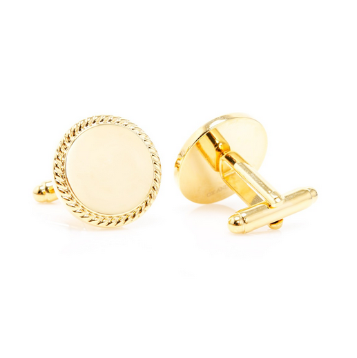Men’s Cufflinks- 14K Yellow Gold Plated Stainless Steel with Rope Border Design