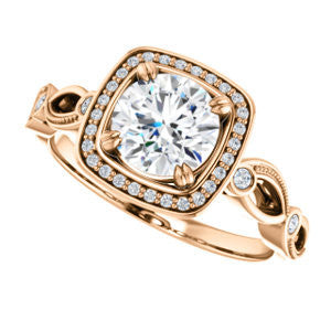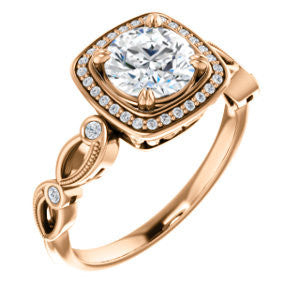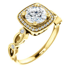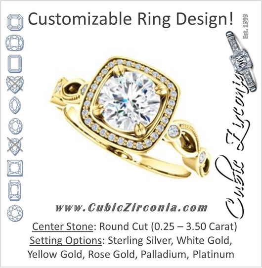 Cubic Zirconia Engagement Ring- The Angela (Customizable Whimsical Sculpture Halo-Style with Round Center)