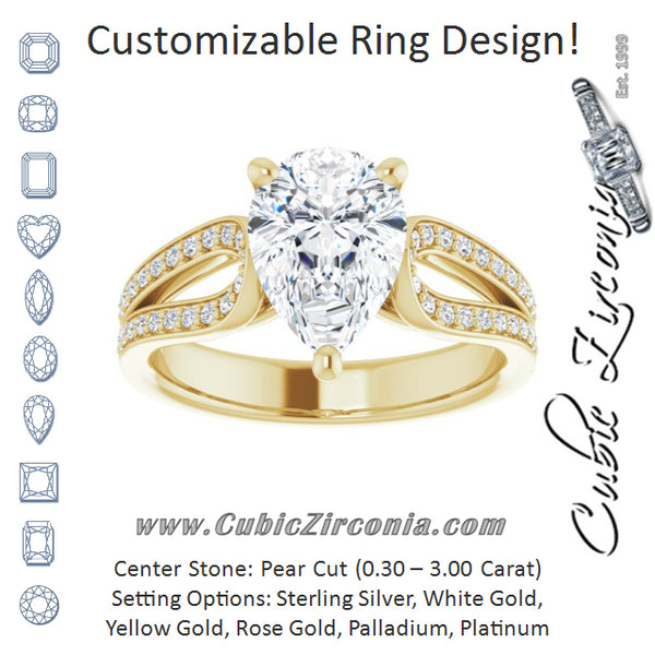Cubic Zirconia Engagement Ring- The Annemarie (Customizable Pear Cut Design featuring Shared Prong Split-band)