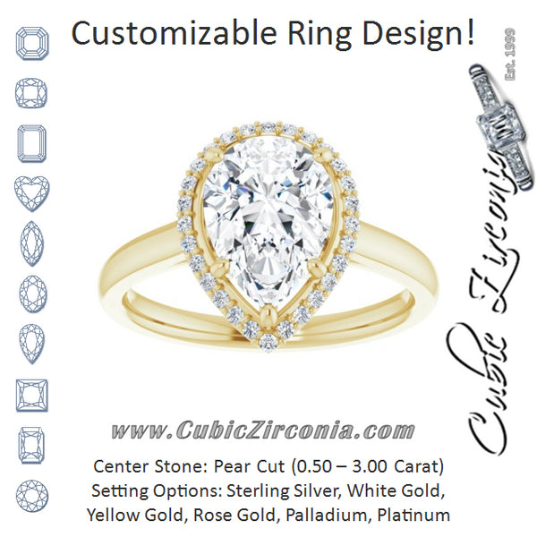 Cubic Zirconia Engagement Ring- The Amber (Customizable Halo-Styled Cathedral Pear Cut Design)