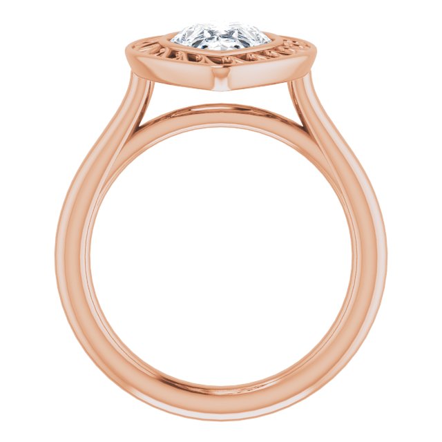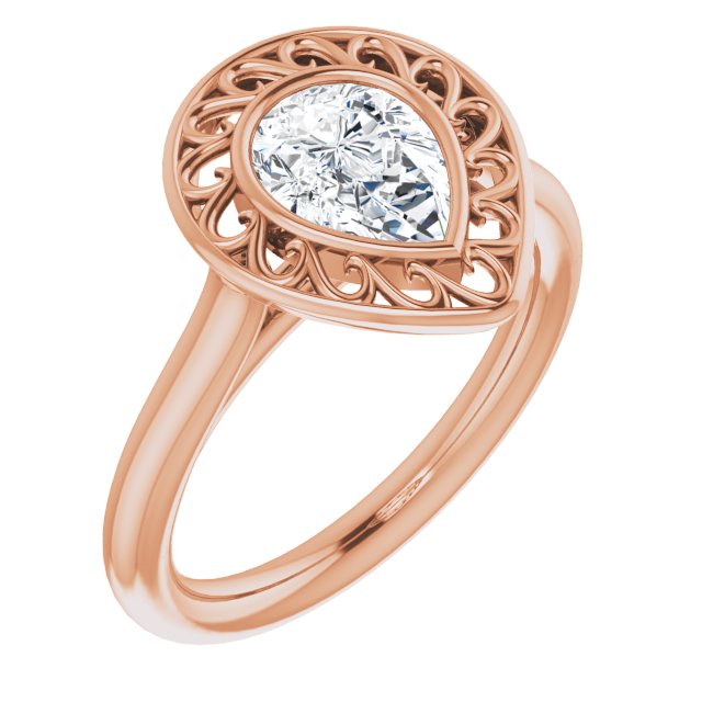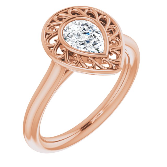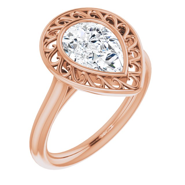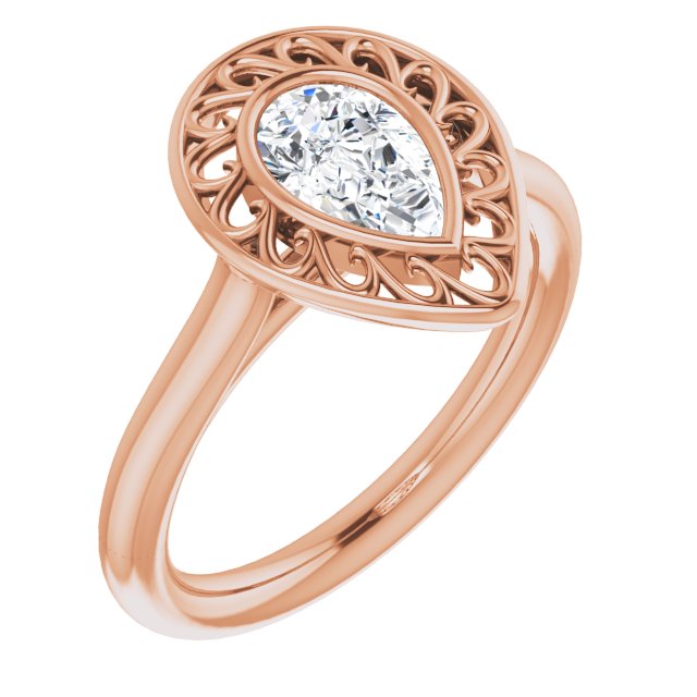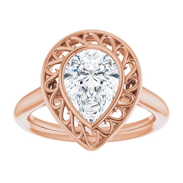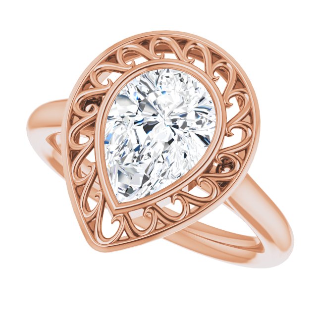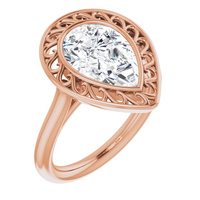 10K Rose Gold Customizable Cathedral-Bezel Style Pear Cut Solitaire with Flowery Filigree