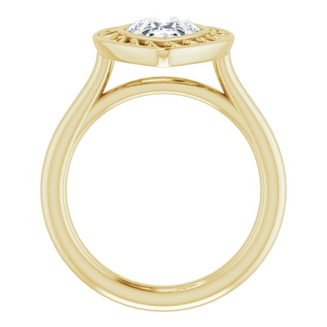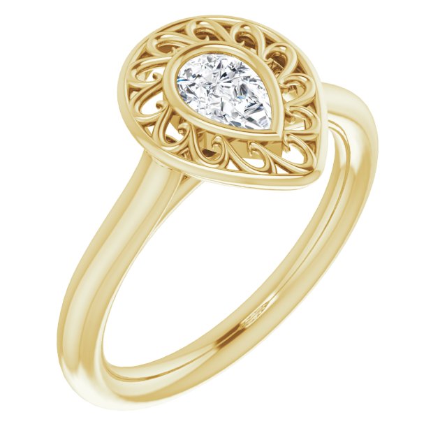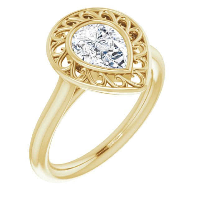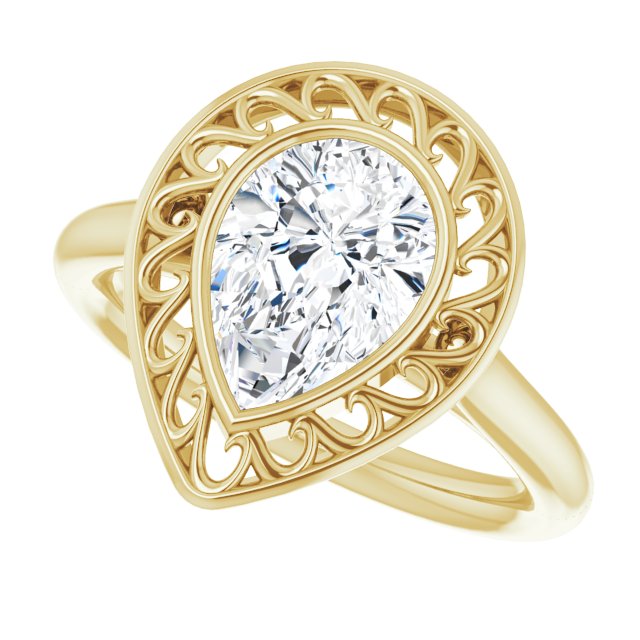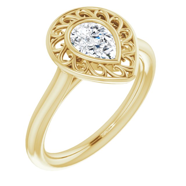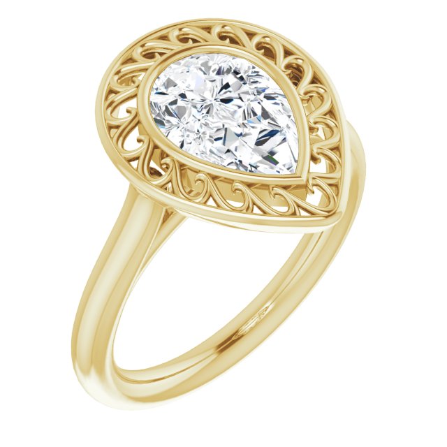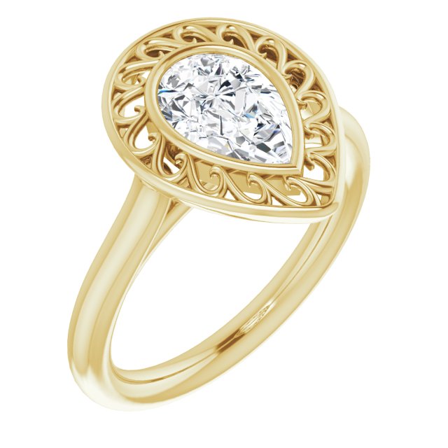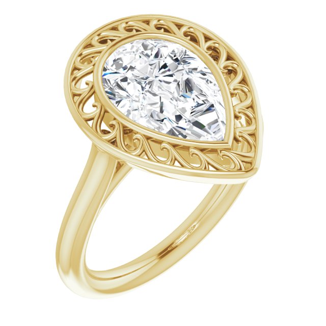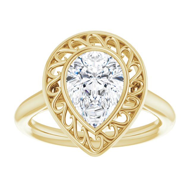 10K Yellow Gold Customizable Cathedral-Bezel Style Pear Cut Solitaire with Flowery Filigree