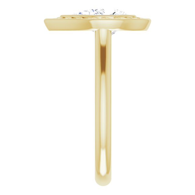 Note: Fancy this design with an accented halo surrounding the filigree-enhanced, bezel-set center stone? We can do that. See The Addie's sister ring here.
