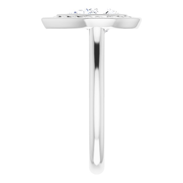 * Your ring’s total carat weight (TCW), band width, weight in grams, and/or number and size of accent, pavé, or halo stones will vary up or down depending on your choice of customizable center stone shape and size, precious metal type, and finger ring size via the drop-down options provided.
