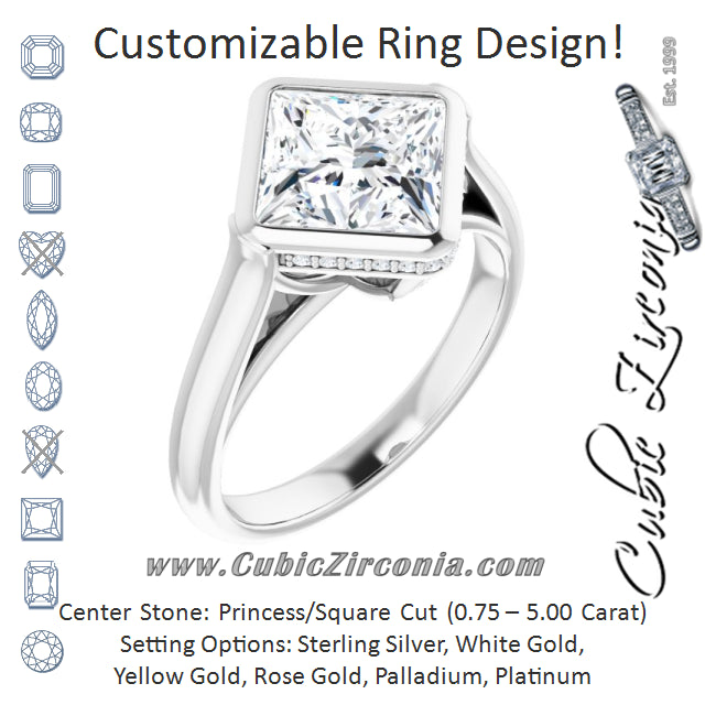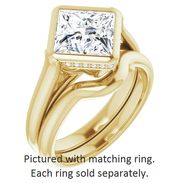 Center Stone Shape: Princess/Square Cut (as pictured). See this customizable ring set with other available center stone shapes here: customize setting.