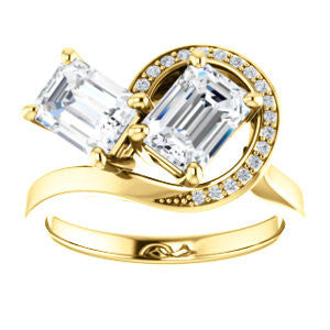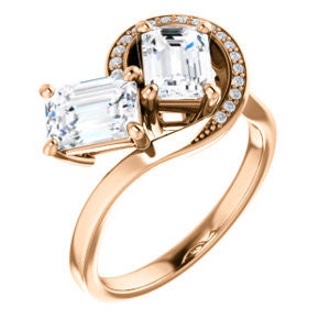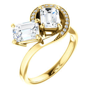 Cubic Zirconia Engagement Ring- The Lupita (Customizable Enhanced 2-stone Asymmetrical Emerald Cut Design with Semi-Halo)