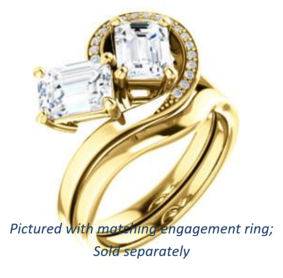 This asymmetrical enhanced 2-stone ring design flaunts the same kind of youthful attitude that once caused high schools across America to ban short skirts for fear of inciting lust of young ladies. Promising just a bit of mischief (but never too much), The Lupita will be crafted from your choice of 12 precious metals. Sixteen tiny round-cut, shared-prong accent stones surround half of the double center setting with a semi-halo evoking a little of the same kind of sultriness that caused those worried teachers to insist on the hands-at-sides fingertips test for skirt length to be “appropriate”. Judging by today’s youth of their parents, maybe someone should have realized that the fastest way to spark a desire to do something in many people is to forbid it. But you’re not in high school anymore. Miss Goody two shoes need not apply. Get The Lupita engagement ring as a stand-alone or together with the matching anniversary band to complete the cubic zirconia bridal set!