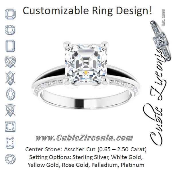 Cubic Zirconia Engagement Ring- The Apryl (Customizable Asscher Cut Center with 4-sided-Accents Knife-Edged Split-Band)