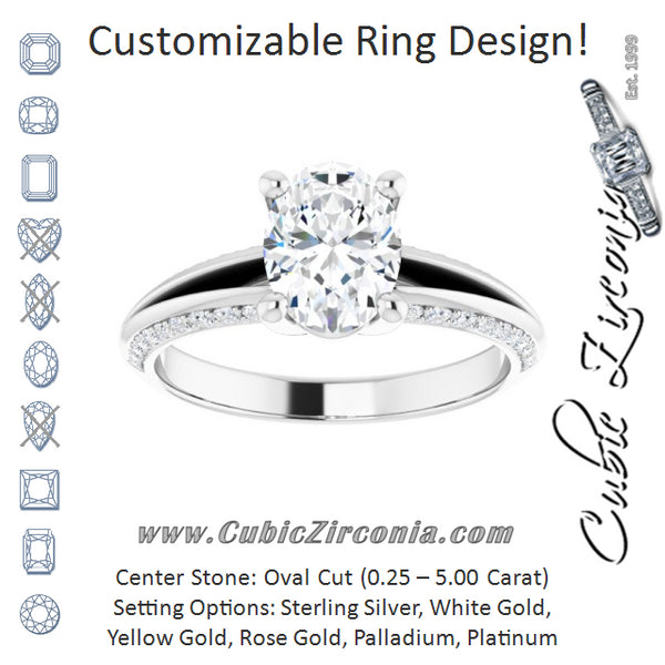 Cubic Zirconia Engagement Ring- The Apryl (Customizable Oval Cut Center with 4-sided-Accents Knife-Edged Split-Band)