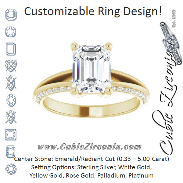 Cubic Zirconia Engagement Ring- The Apryl (Customizable Emerald Cut Center with 4-sided-Accents Knife-Edged Split-Band)