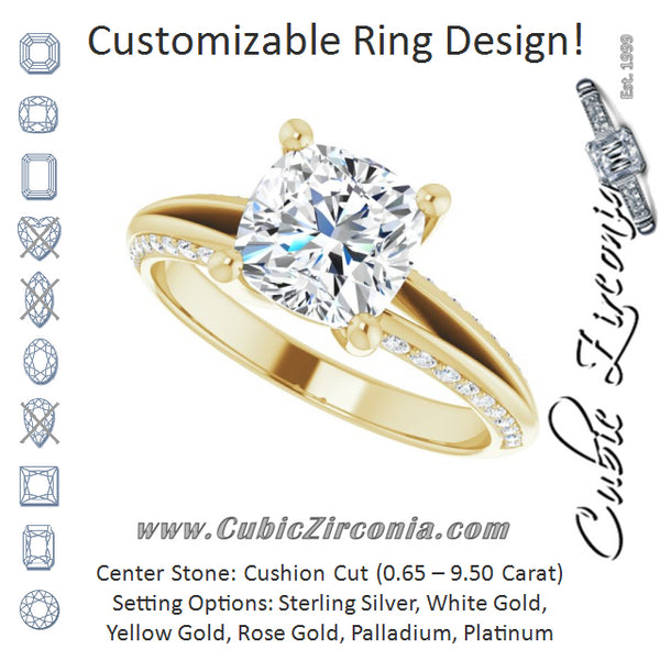 Cubic Zirconia Engagement Ring- The Constance (Customizable Cushion Cut Design featuring Split Band with Accents)