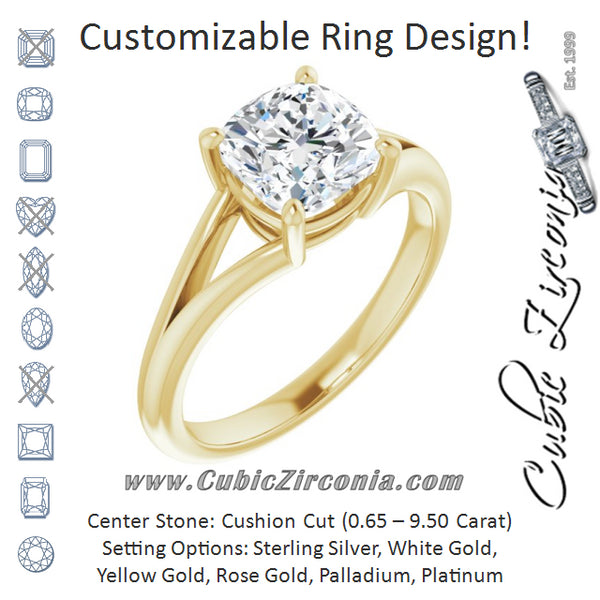 Cubic Zirconia Engagement Ring- The Gayle (Customizable Cushion Cut Solitaire with Wide-Split Band)