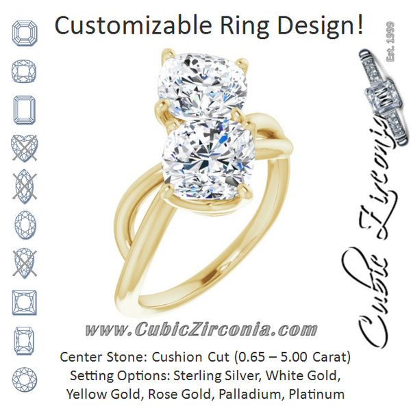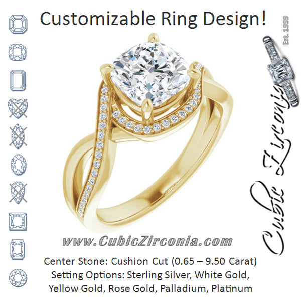 Cubic Zirconia Engagement Ring- The Jazzlyn (Customizable Cushion Cut Solitaire with Infinity-inspired Twisting-Rope Split Band)