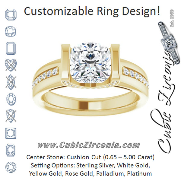 Cubic Zirconia Engagement Ring- The Coralie (Customizable Bezel-set Cushion Cut Setting with Wide Sleeve-Accented Band)