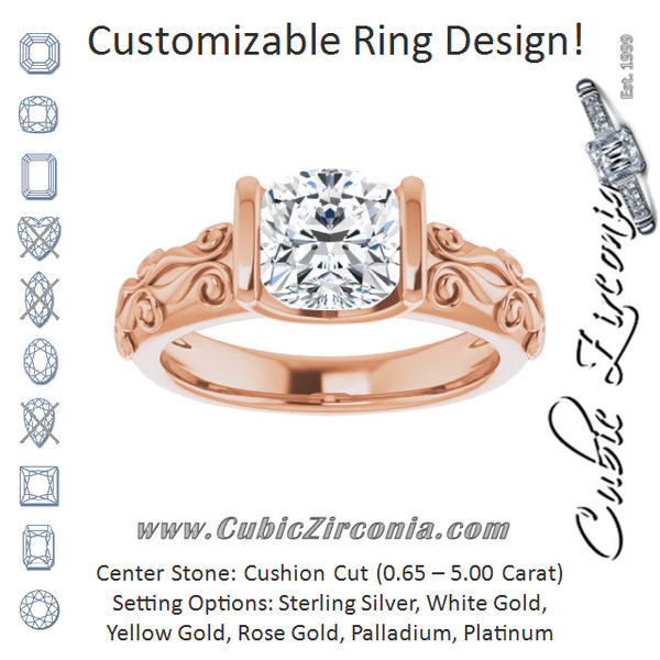 Cubic Zirconia Engagement Ring- The Dulcia (Customizable Cushion Cut Solitaire with Wheat-inspired Band)