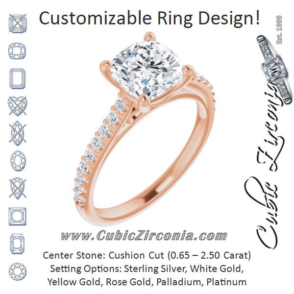 Cubic Zirconia Engagement Ring- The Alissa (Customizable Cushion Cut Solitaire with Under-trellis Design)