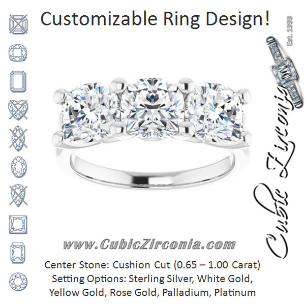 Cubic Zirconia Engagement Ring- The Jisha (Customizable Triple Cushion Cut Design with Thin Band)
