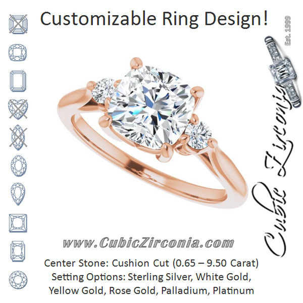 Cubic Zirconia Engagement Ring- The Sandhya (Customizable 9-stone Cushion Cut Design with 8-prong Decorative Basket & Round Cut Side Stones)