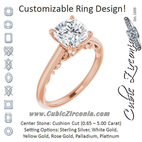 Cubic Zirconia Engagement Ring- The An Chen (Customizable Cushion Cut Solitaire featuring Delicate Metal Scrollwork)