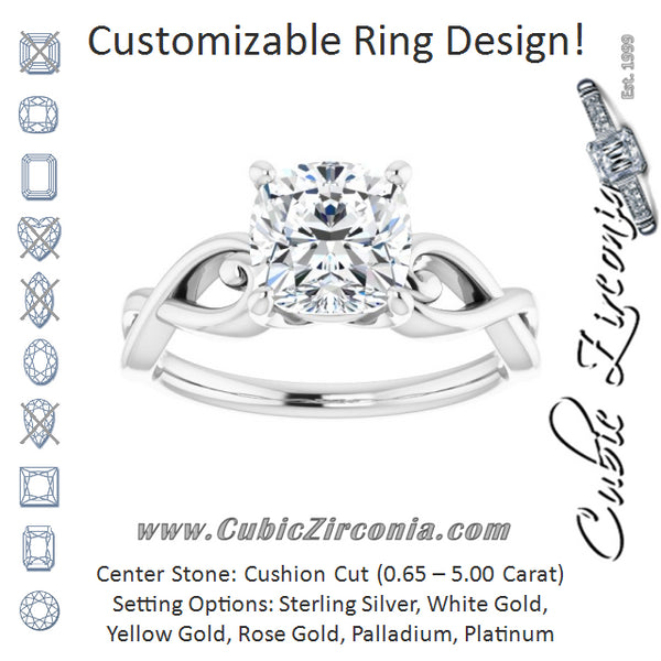 Cubic Zirconia Engagement Ring- The Eleonora (Customizable Cushion Cut Solitaire Design with Tapered Infinity-symbol Split-band)