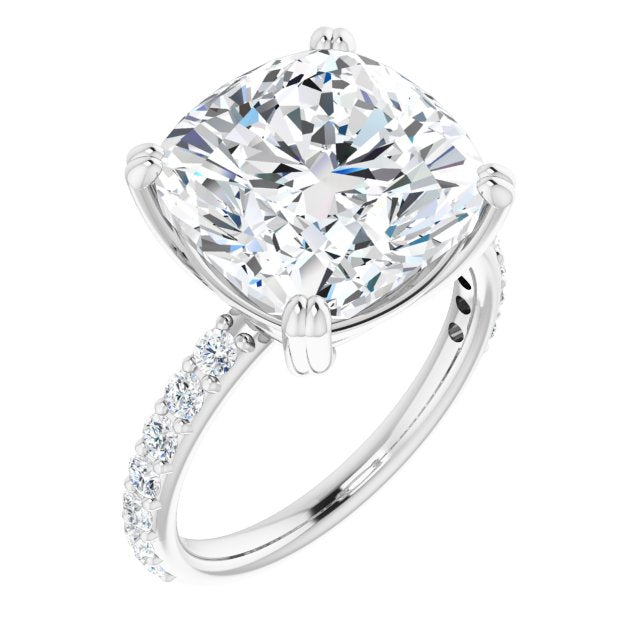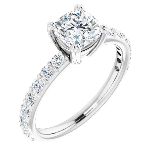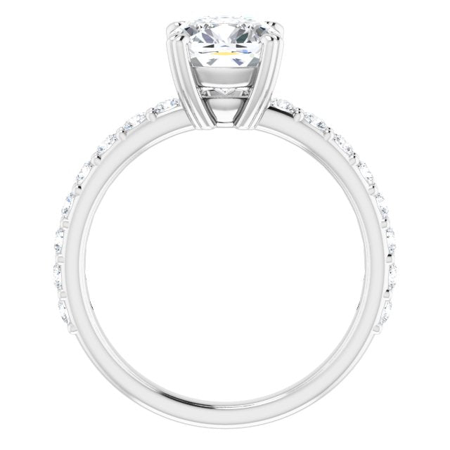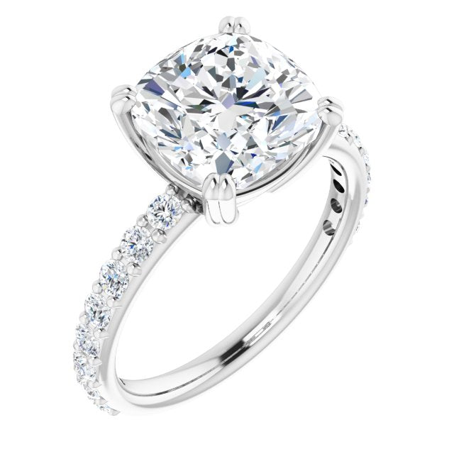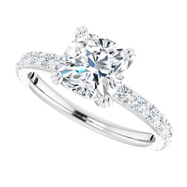 10K White Gold Customizable Cushion Cut Design with Large Round Cut 3/4 Band Accents