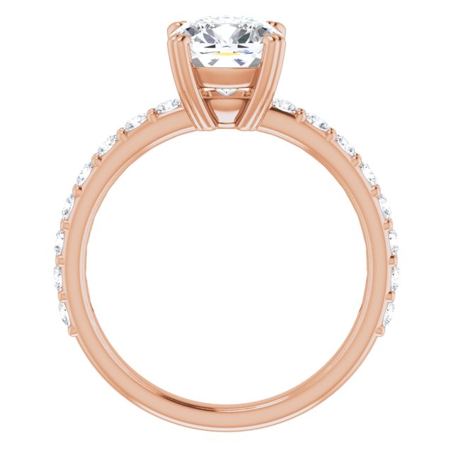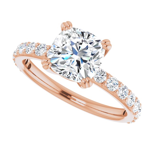 10K Rose Gold Customizable Cushion Cut Design with Large Round Cut 3/4 Band Accents
