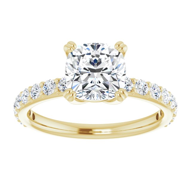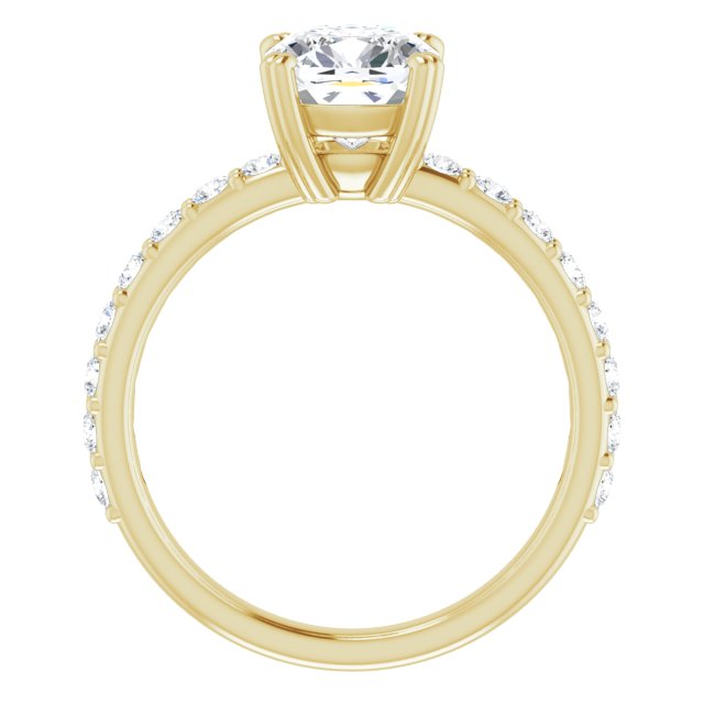 10K Yellow Gold Customizable Cushion Cut Design with Large Round Cut 3/4 Band Accents