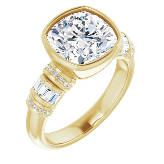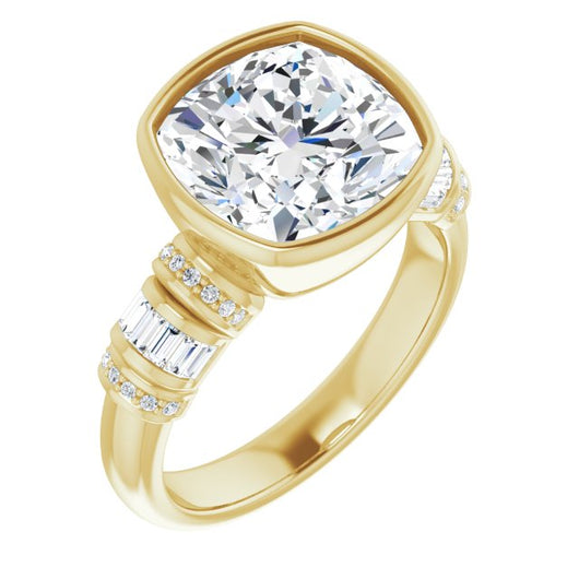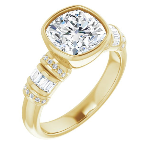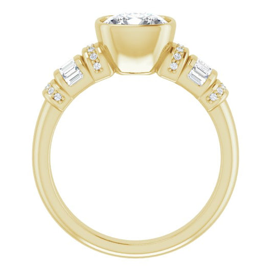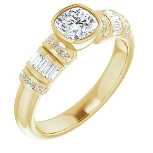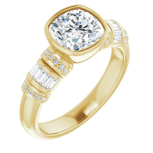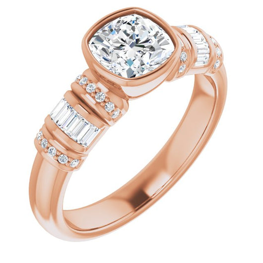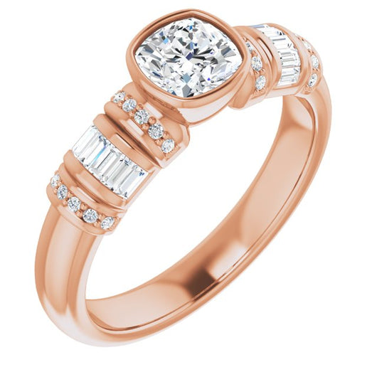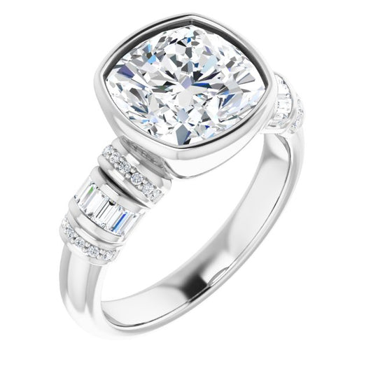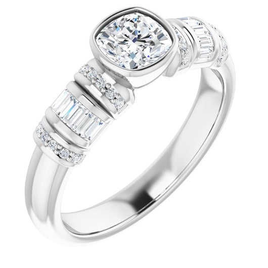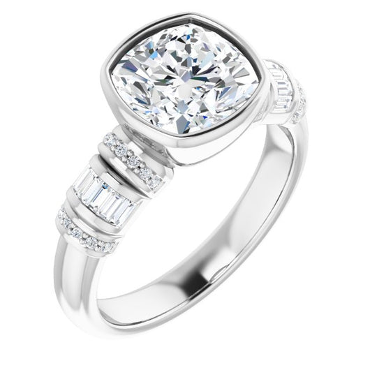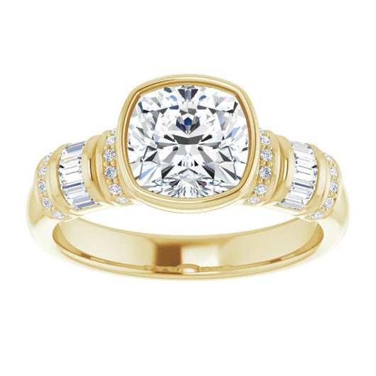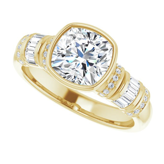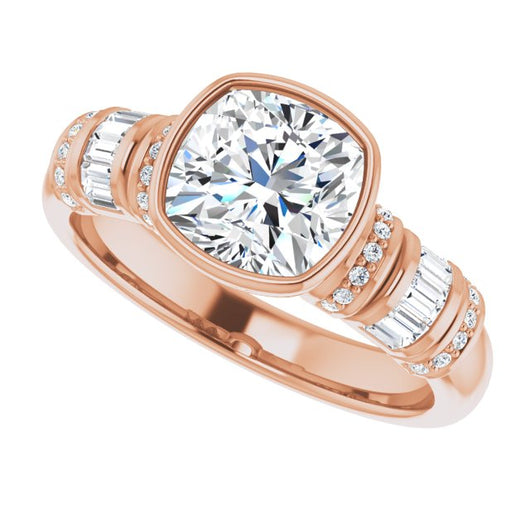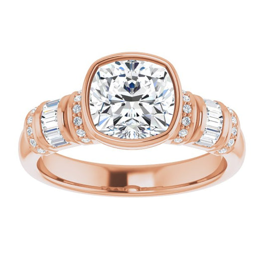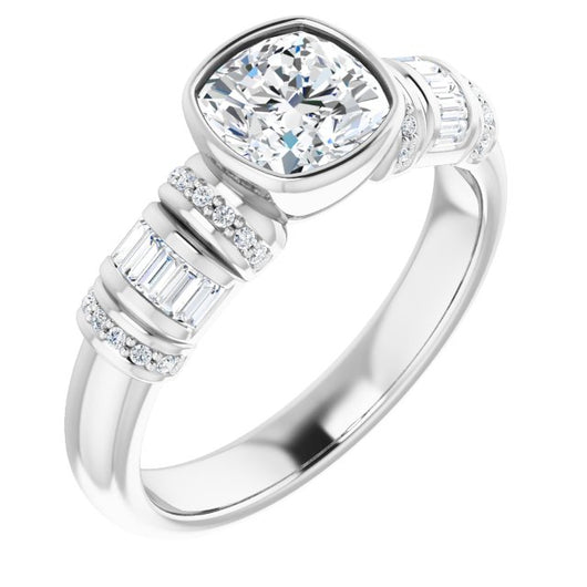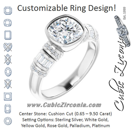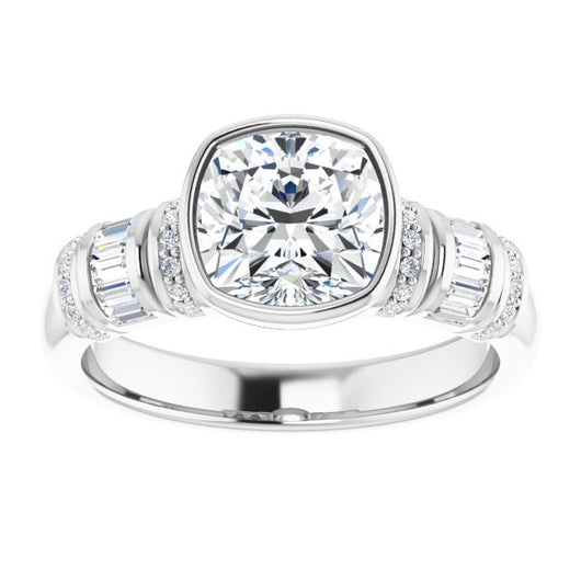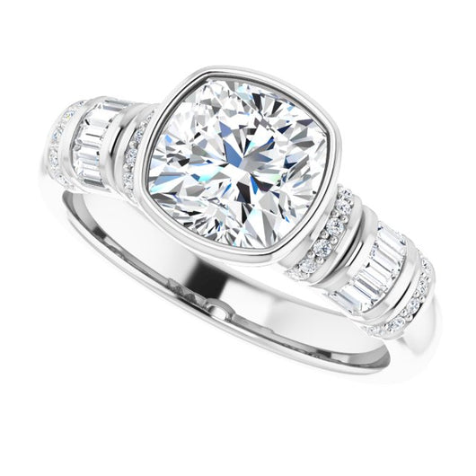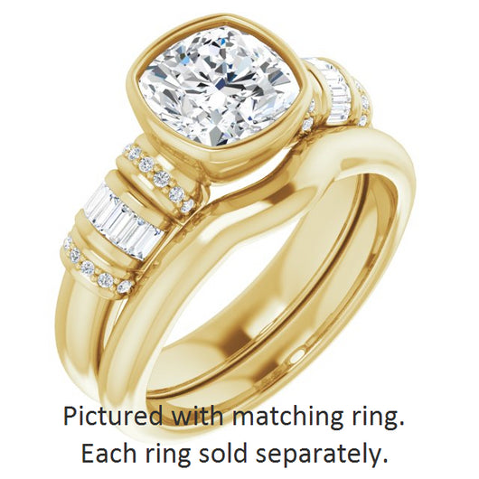 Center Stone Shape: Cushion Cut (as pictured). See this customizable ring set with other available center stone shapes here: customize setting.