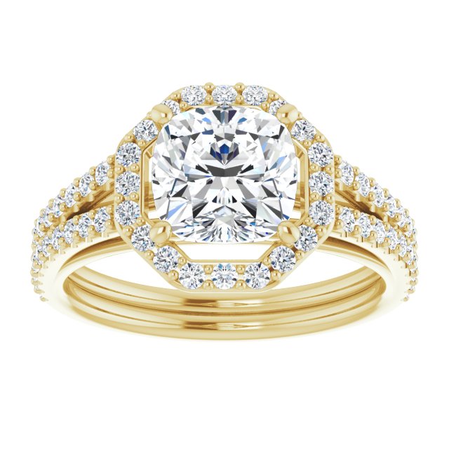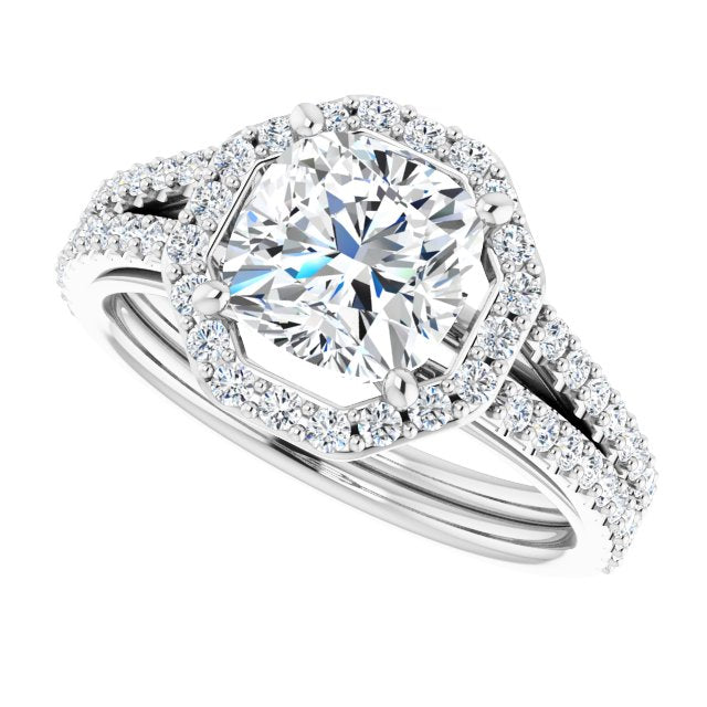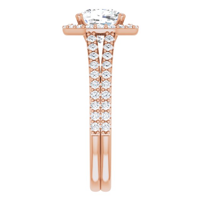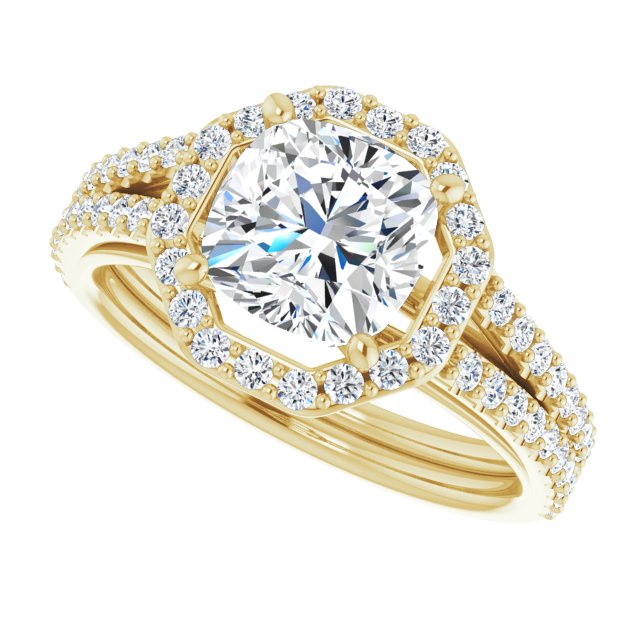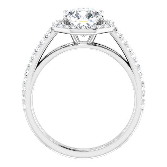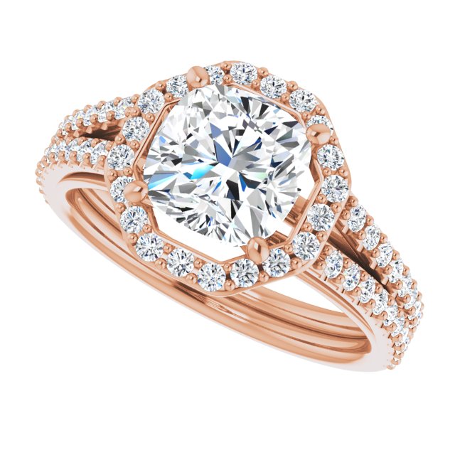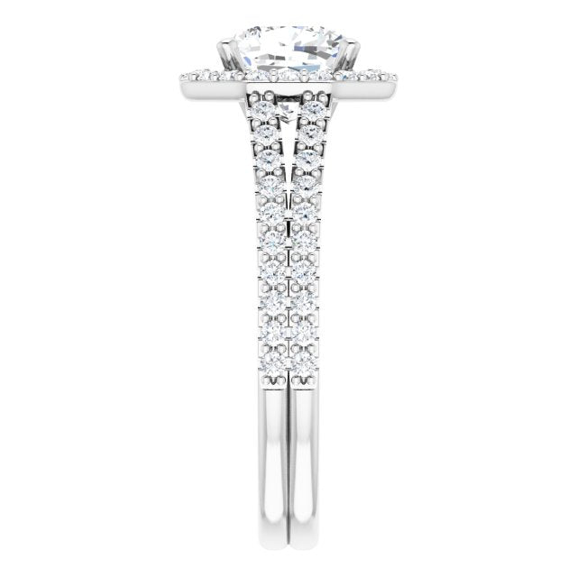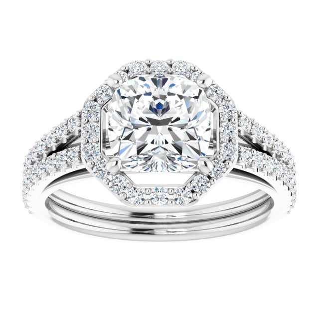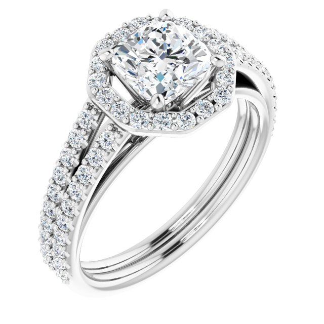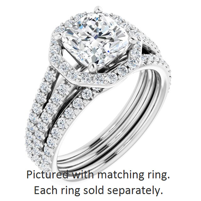 Center Stone Shape: Cushion Cut (as pictured). See this customizable ring set with other available center stone shapes here: customize setting.