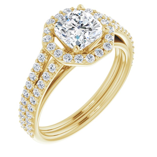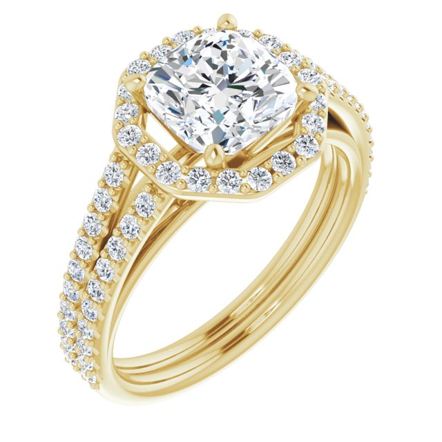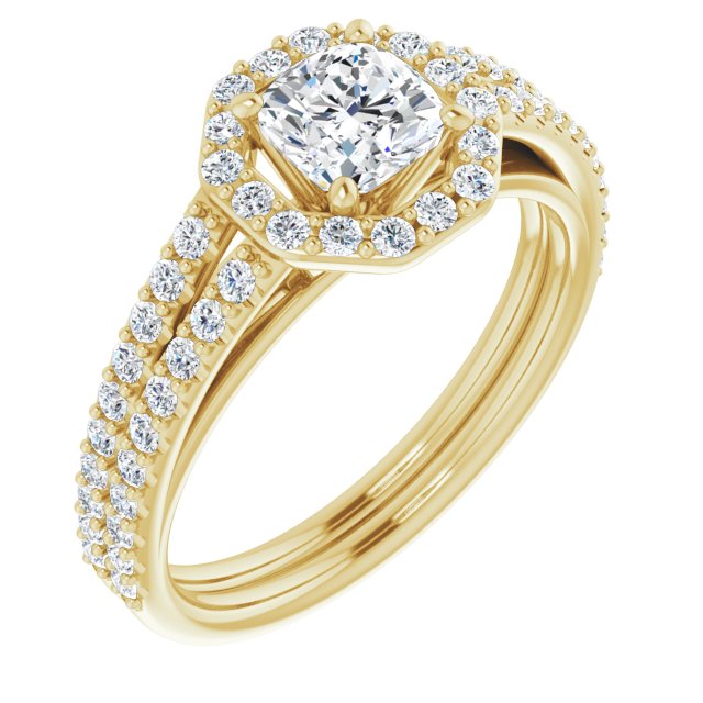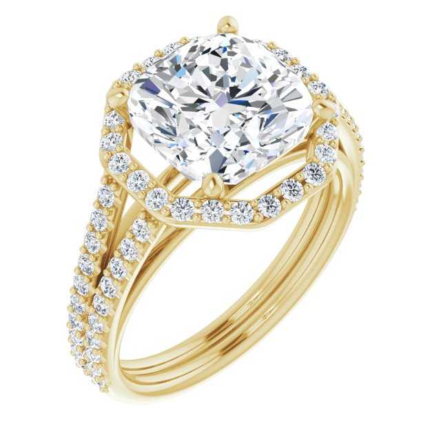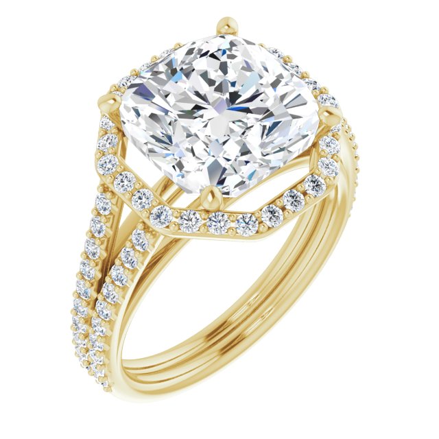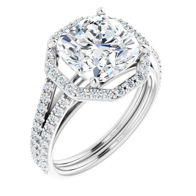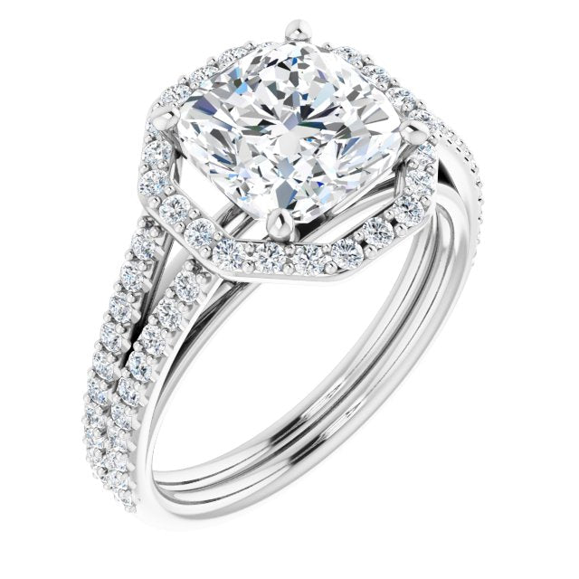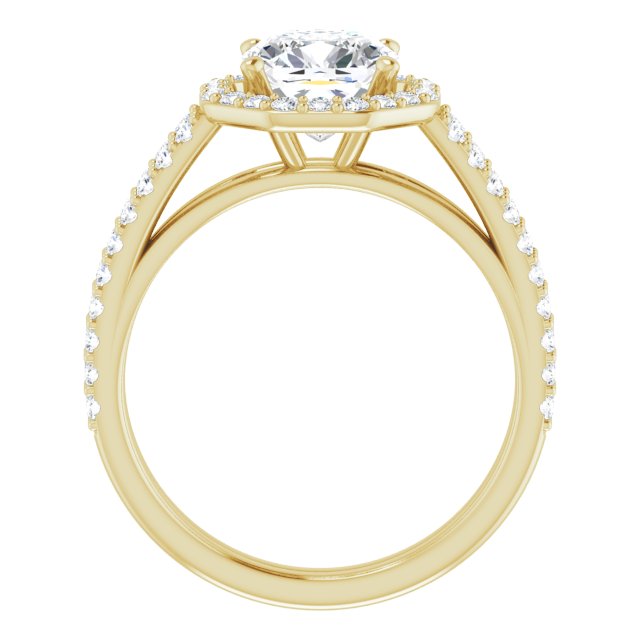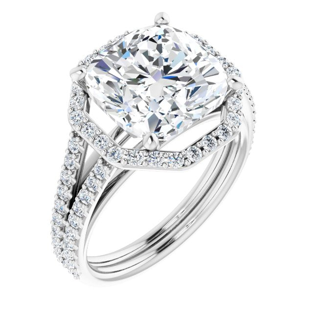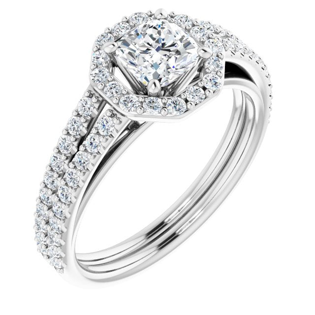 Center Stone Shape: Cushion Cut (as pictured). See this customizable ring set with other available center stone shapes here: customize setting.