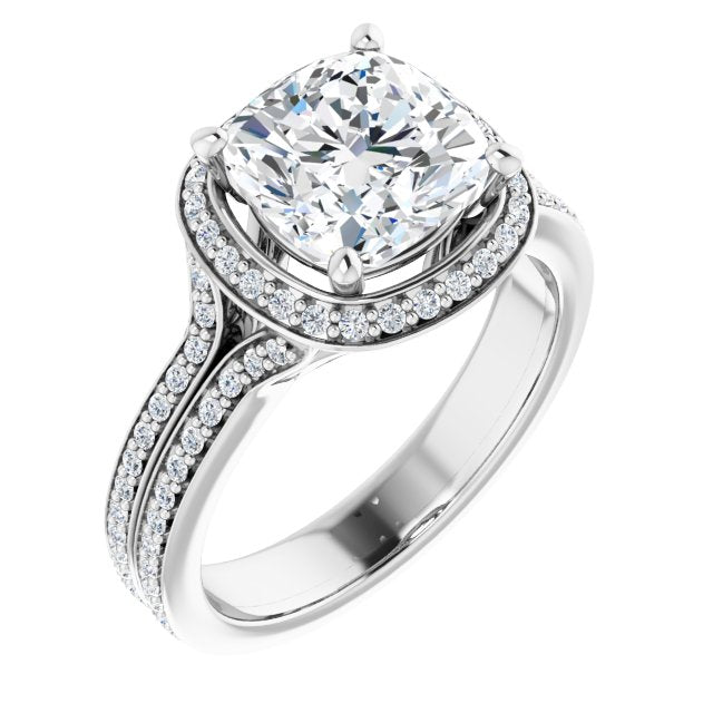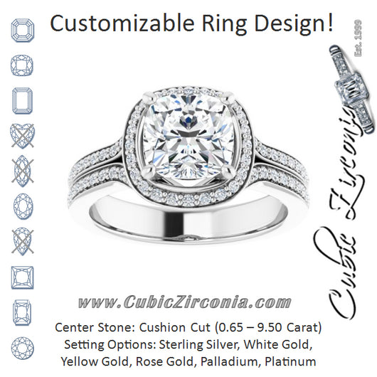 Cubic Zirconia Engagement Ring- The Dionne (Customizable Cathedral-raised Cushion Cut Setting with Halo and Shared Prong Band)
