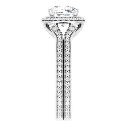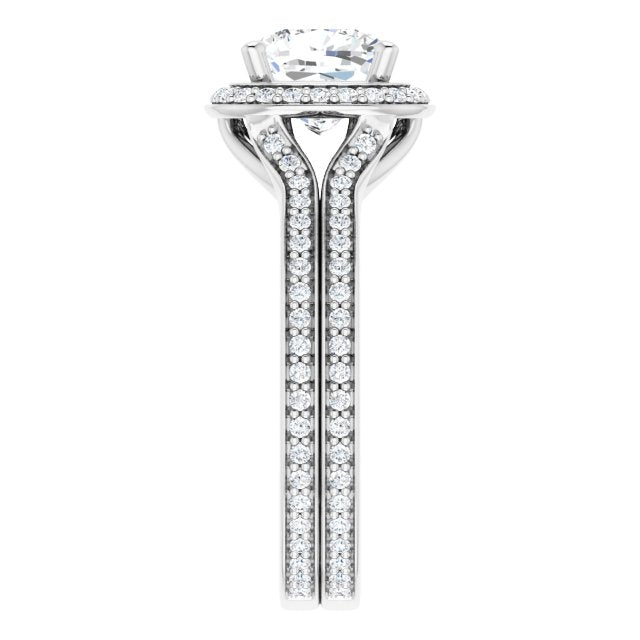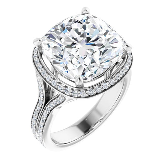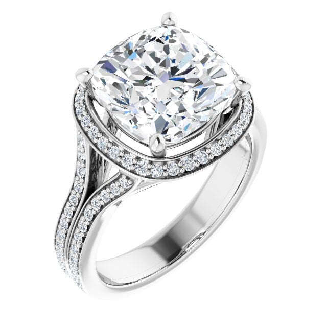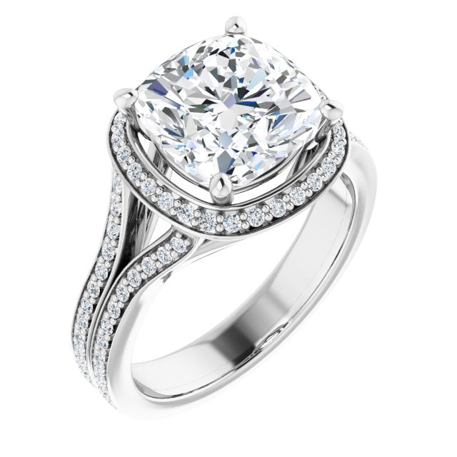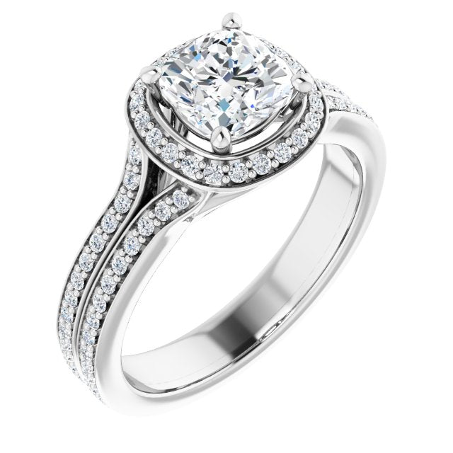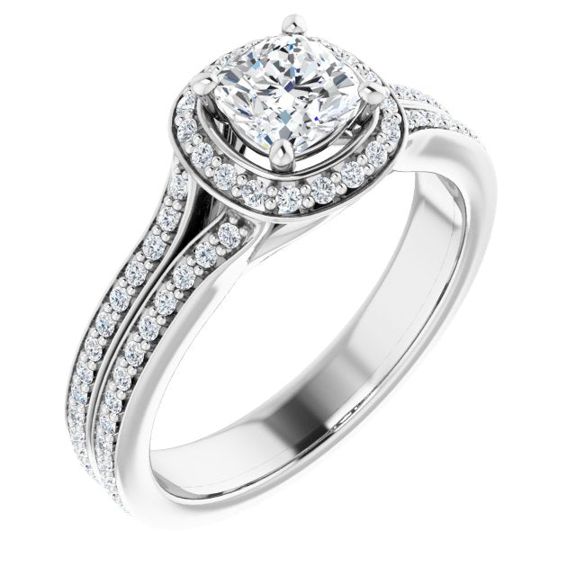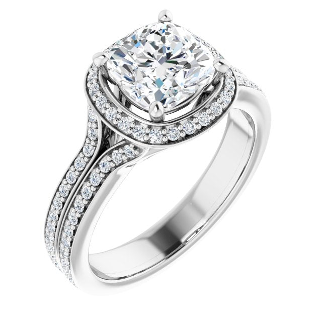 10K White Gold Customizable Cathedral-raised Cushion Cut Setting with Halo and Shared Prong Band