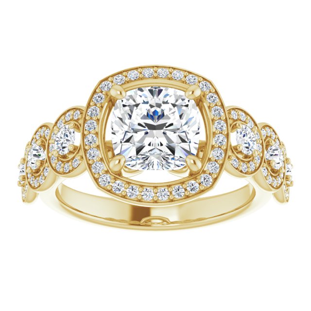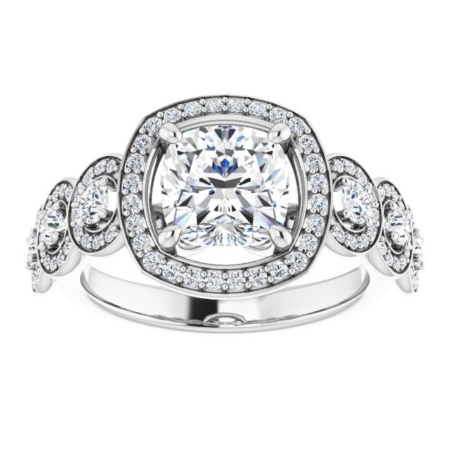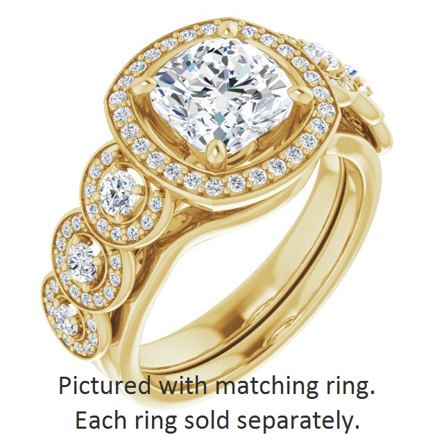Center Stone Shape: Cushion Cut (as pictured). See this customizable ring set with other available center stone shapes here: customize setting.