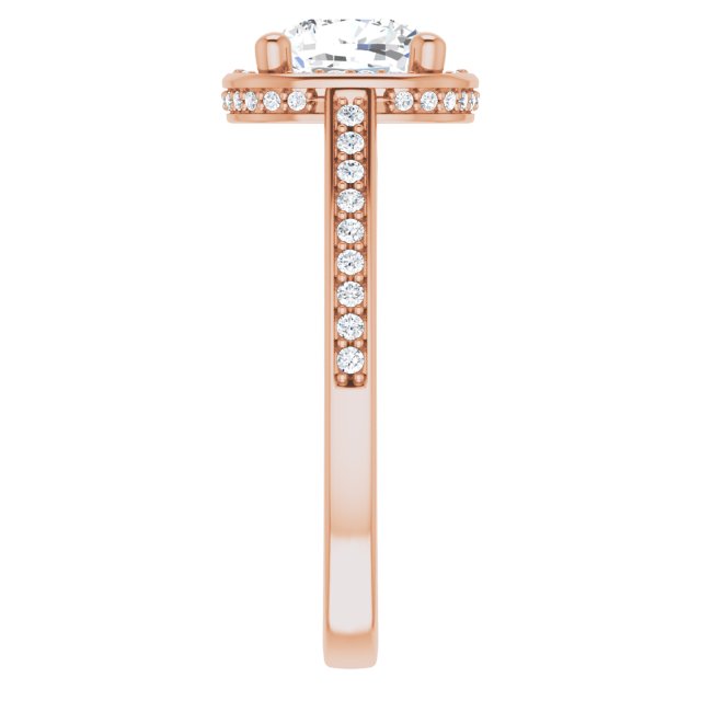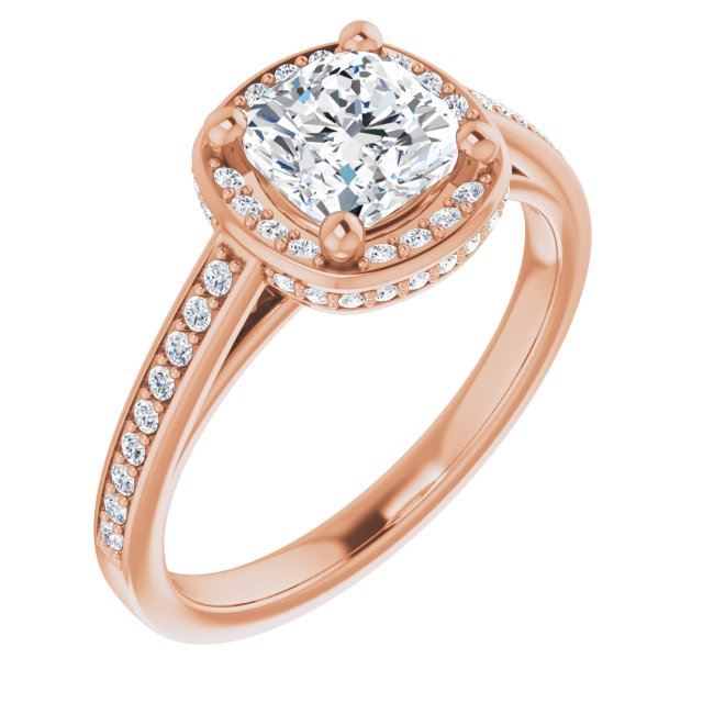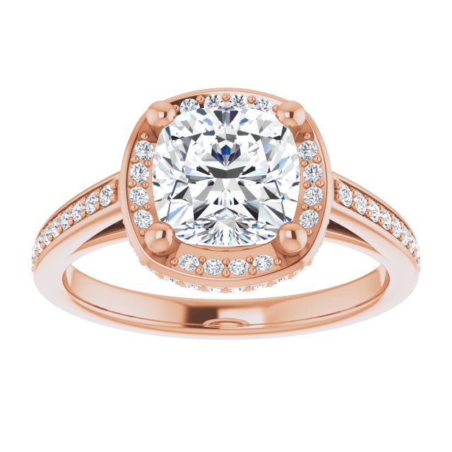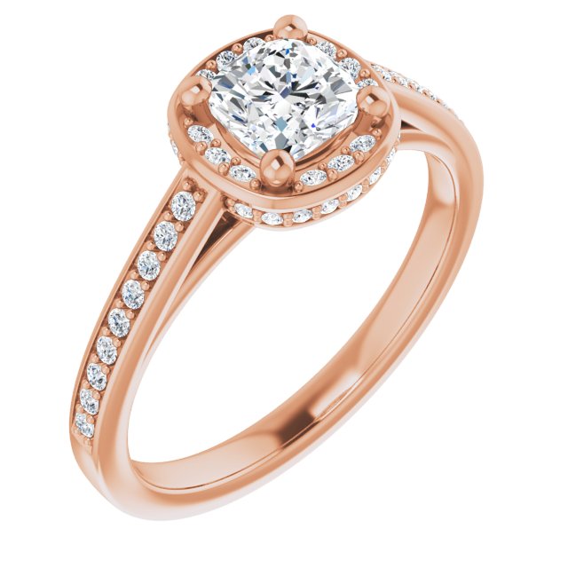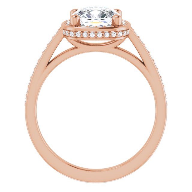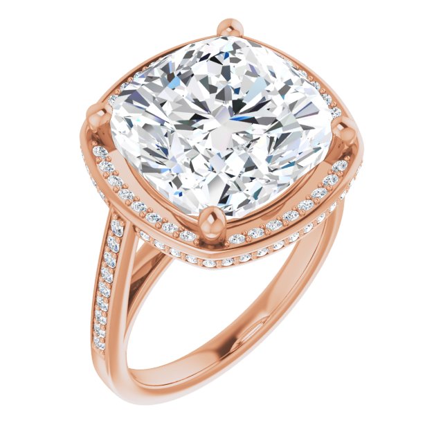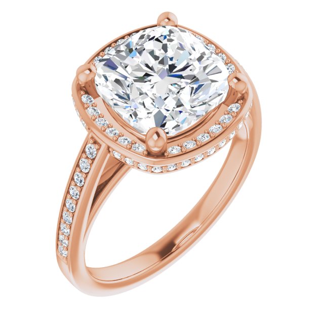 10K Rose Gold Customizable Cathedral-Halo Cushion Cut Design with Under-halo & Shared Prong Band